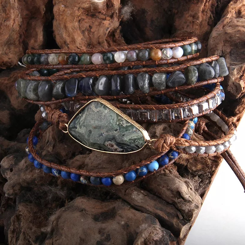 ~ African Turquoise & Labradorite Bohemian Multi-Wrap Bracelet ~